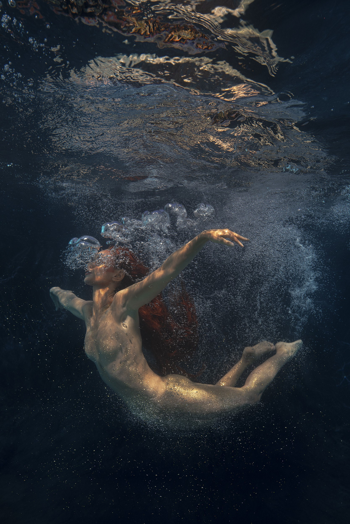 Beth Mitchell currently resides and practices between Brisbane and Melbourne, having devoted many years to developing her unique approach to underwater digital photography. Her work invites viewers into surreal, immersive aquatic worlds, where female figures exist in states of suspension and movement.