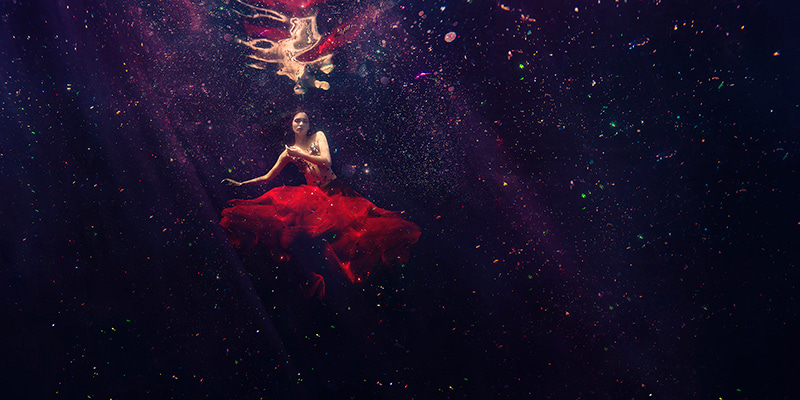 Beth Mitchell currently resides and practices between Brisbane and Melbourne, having devoted many years to developing her unique approach to underwater digital photography. Her work invites viewers into surreal, immersive aquatic worlds, where female figures exist in states of suspension and movement.