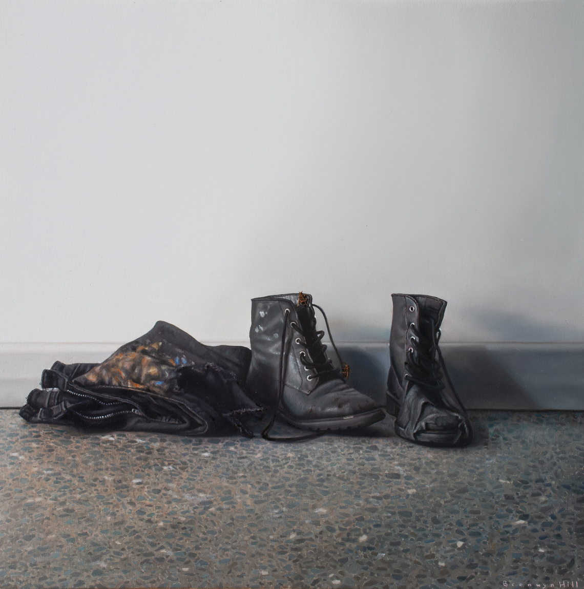 In her most recent paintings Hill collapses the traditional boundaries between portraiture and still life. Working within a rigorously minimalist aesthetic, her subjects - figures, bodies and animals alike - are presented as isolated forms within a field of pure, light filled clarity. Stripped of narrative proclivities or cluttered contexts her subjects are transported to a place of contemplative otherness.