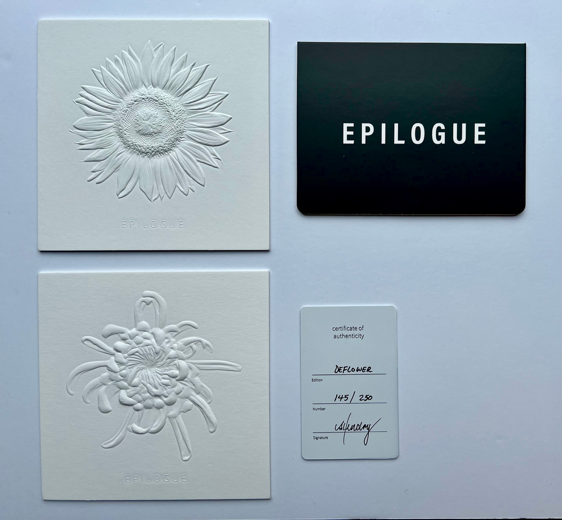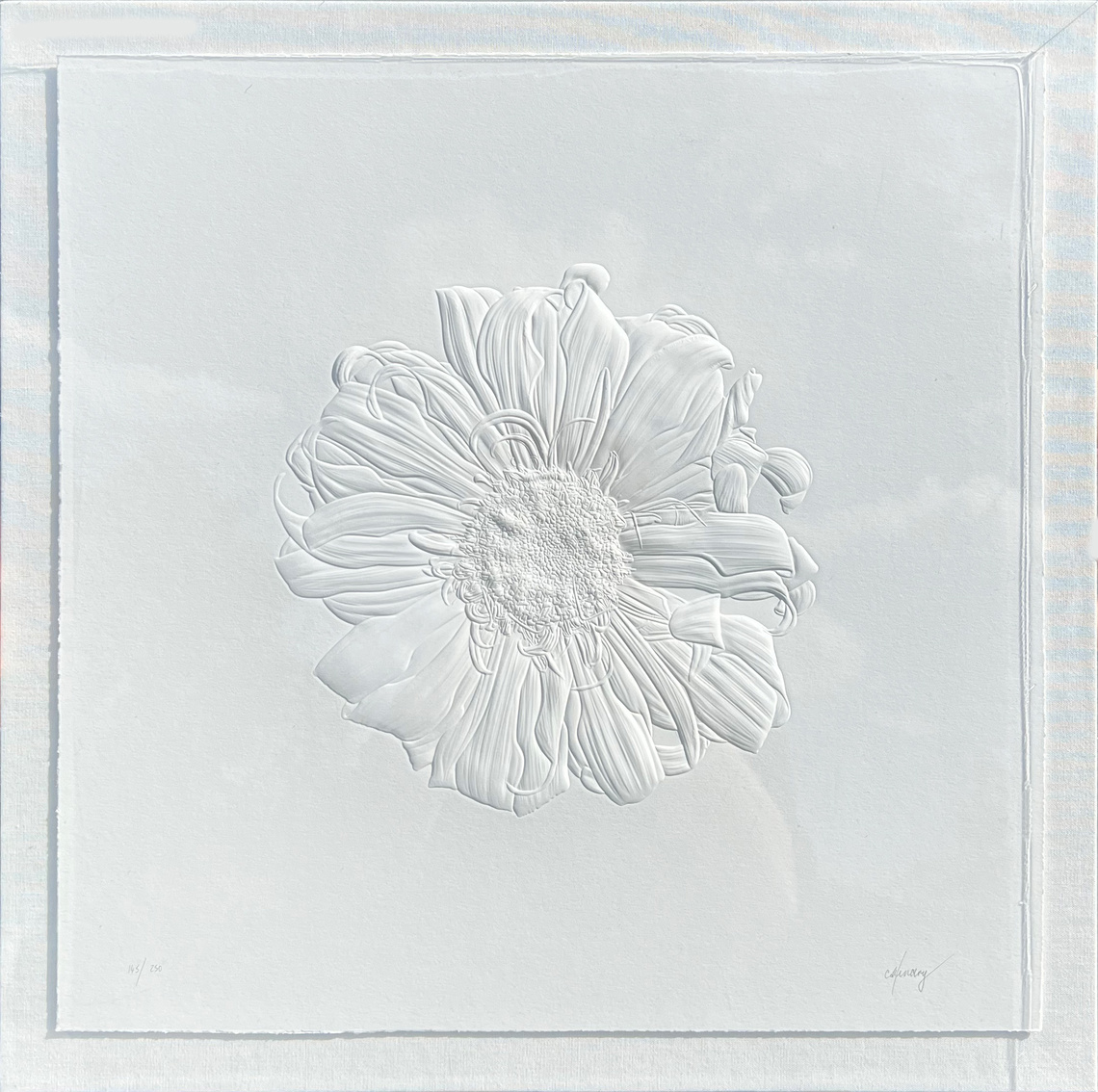 Limited edition embossed print from CJ Hendry's 2021 'Epilogue' series. Includes a UV protective plexiglass box frame, microfiber cleaning cloth, two mini embossed flower cards and an authenticity certificate. Edition 145 of 250.