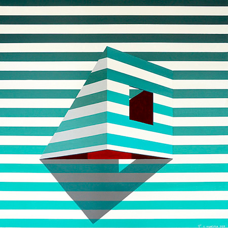 Brisbane artist J Valenzuela Didi draws on the emergence of patterns and geometric shapes to explore common scenes and signposts of modern life.  In his paintings, familiar urban landscapes become haunting and alien reminders of the beauty and character of the present-day.