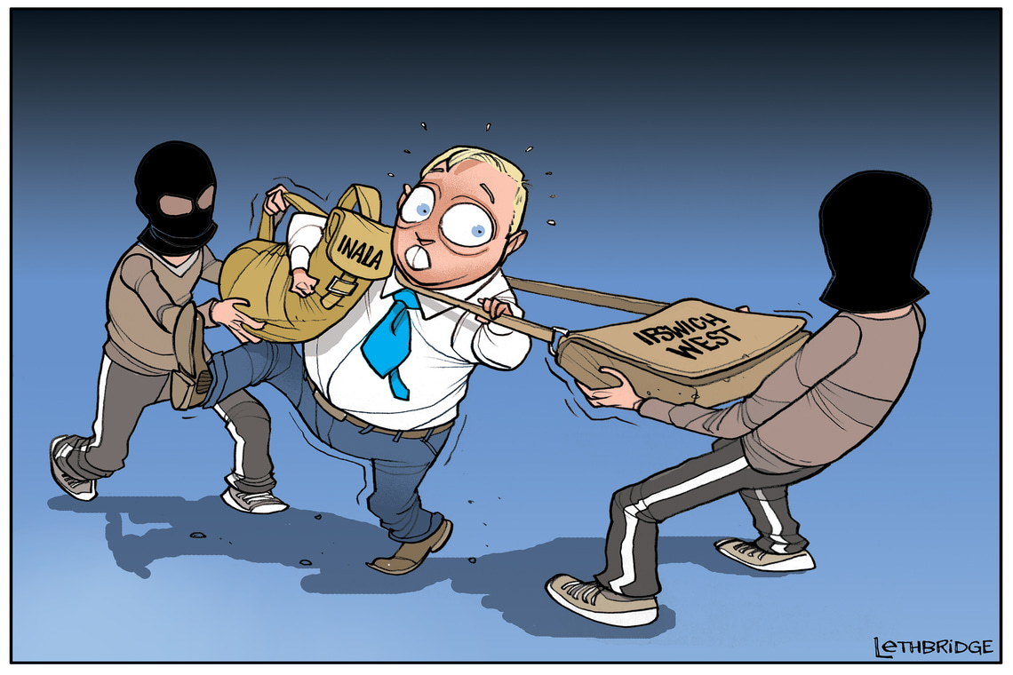 Published in the Political Cartoon column of the Courier Mail. Drawn and signed by cartoonist Brett Lethbridge.
