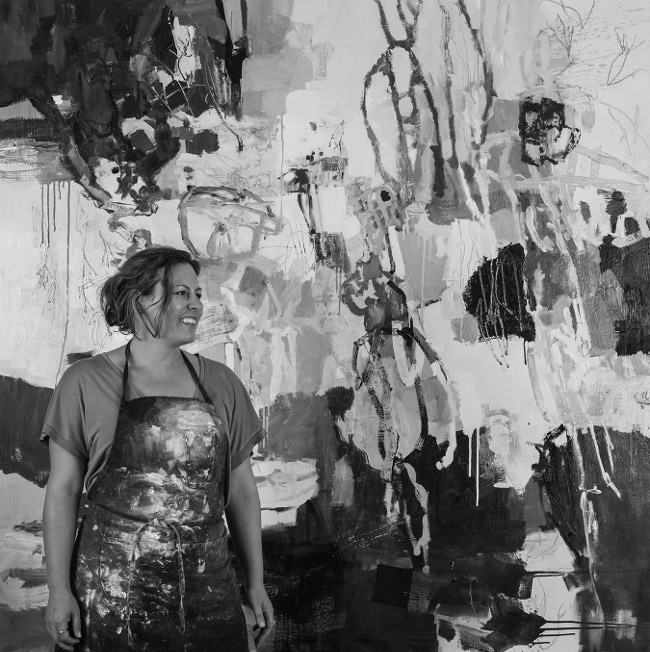 She continues to paint and explore abstraction and the emotional gravity of place in her studio which is situated on the water’s edge in Northern NSW.  Her work is a constant investigation about capturing the pulse and rawness of the land she is immersed within.
