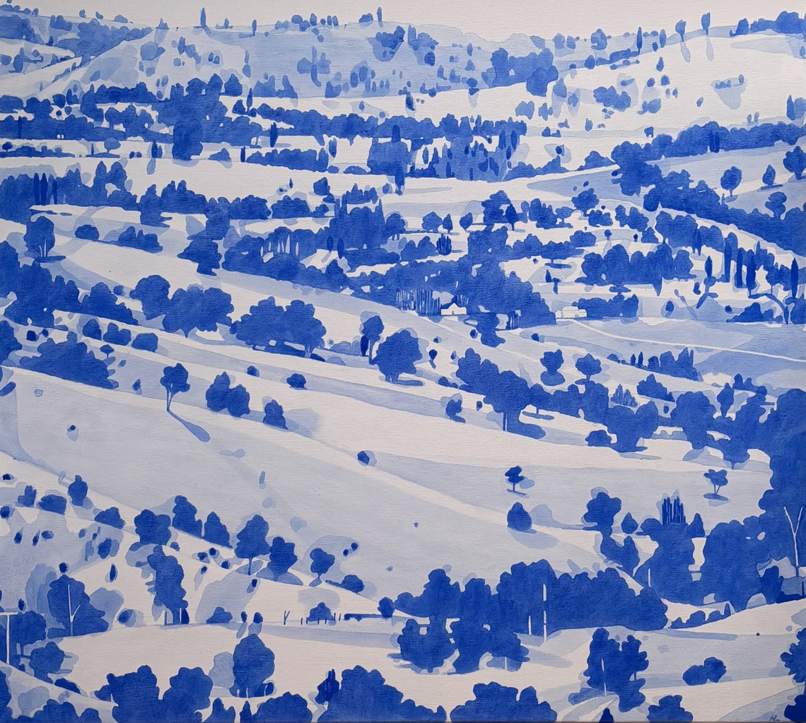 Kristen Lethem’s artwork focuses on landscape and the exploration of patterns within the environment formed as a result of the interplay between topography, vegetation and by extension - shadow and light. Through the use of a restricted palette, these light and shadow patterns appear script like, coalescing into Lethem’s personal, visual language of the landscape.
