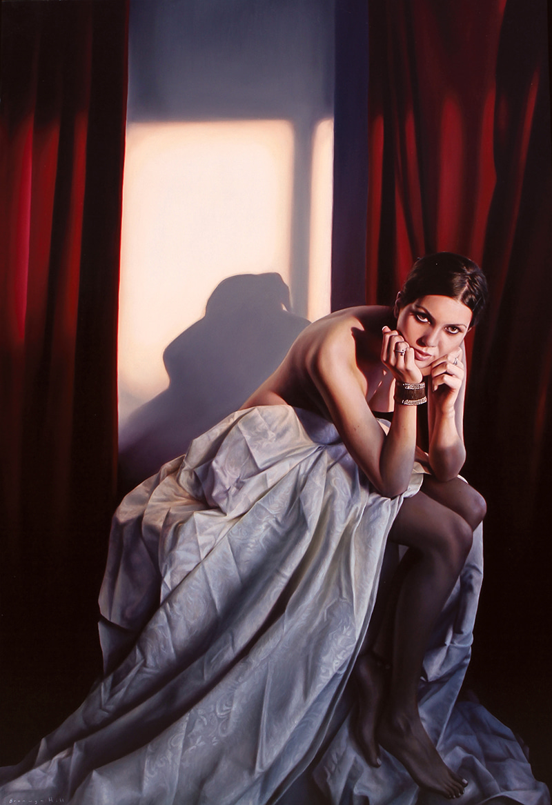 Bronwyn Hill is a Brisbane based painter whose practice predominantly focuses on portraiture and figurative representation. Recognized for her sensual photo-real oil paintings, full of poetic narratives and gentle observation, her work often exploring ideas of self-analysis and introspection within moments of personal solitude. Imbued with a sense of stillness and contemplation, Hill’s use of light and shadow and its emotional impact is a recurring feature of her images, as is her subtle use of colour and exquisite depiction of natural forms.