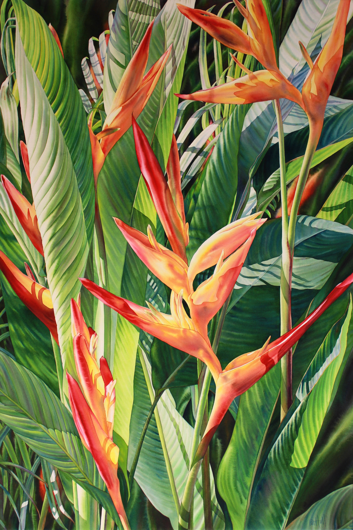Pat Hall floods her stretched paper canvases with colour before sealing them in a UV stabilised and waterproof coating. The images remain vibrant and accessible without being hidden behind glass; breathing new life into the medium.