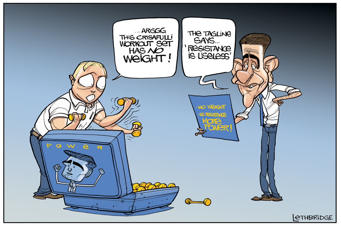 Published in the Political Cartoon column of the Courier Mail. Drawn and signed by cartoonist Brett Lethbridge.