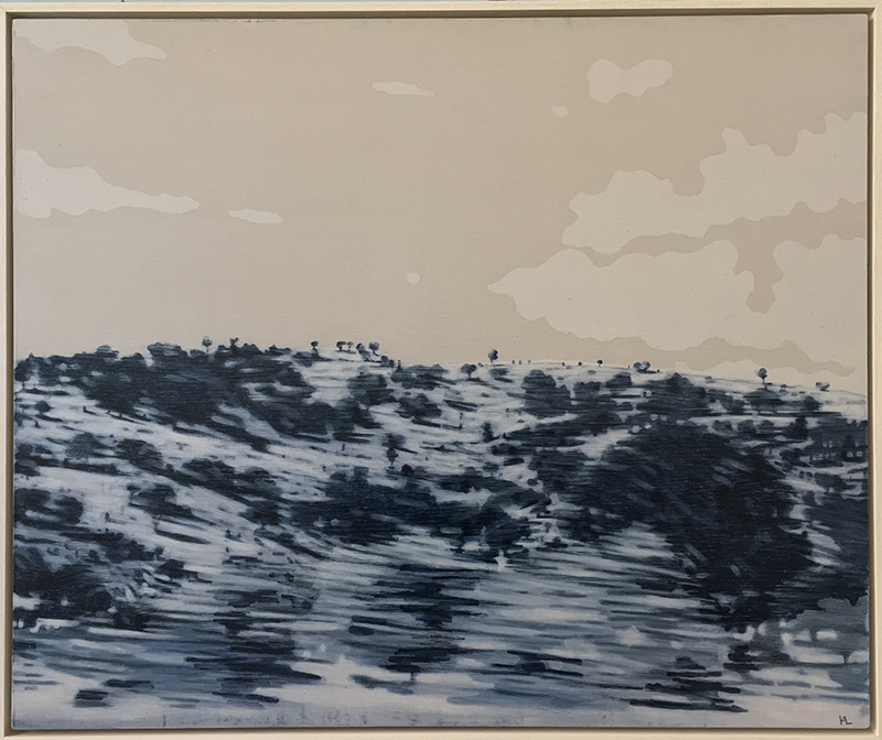 Kristen Lethem’s artwork focuses on landscape and the exploration of patterns within the environment formed as a result of the interplay between topography, vegetation and by extension - shadow and light.  Through the use of a restricted palette, these light and shadow patterns appear script like, coalescing into Lethem’s personal, visual language of the landscape.