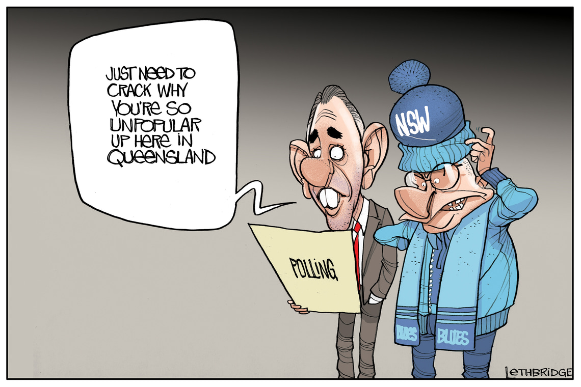 Published in the Political Cartoon column of the Courier Mail. Drawn and signed by cartoonist Brett Lethbridge.