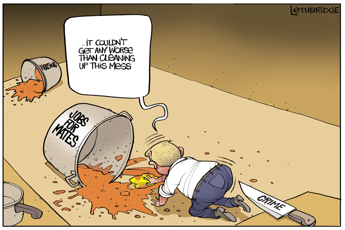 Published in the Political Cartoon column of the Courier Mail. Drawn and signed by cartoonist Brett Lethbridge.