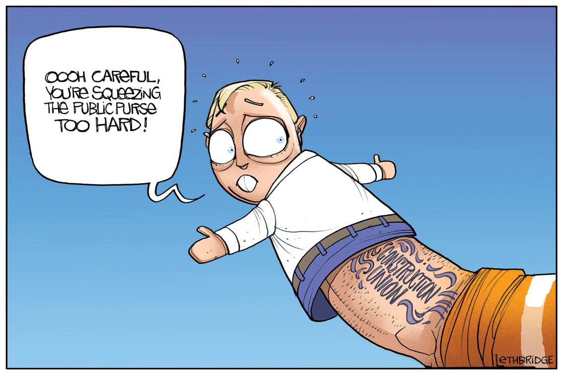 Published in the Political Cartoon column of the Courier Mail. Drawn and signed by cartoonist Brett Lethbridge.