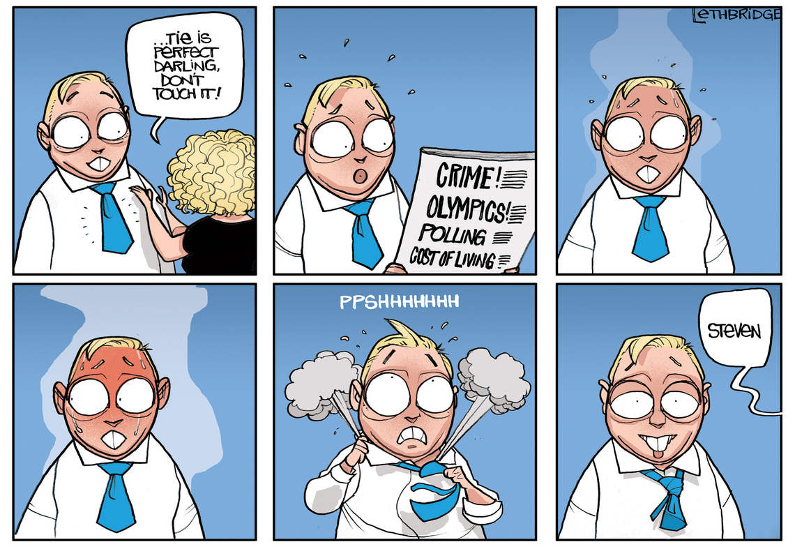 Published in the Political Cartoon column of the Courier Mail. Drawn and signed by cartoonist Brett Lethbridge.