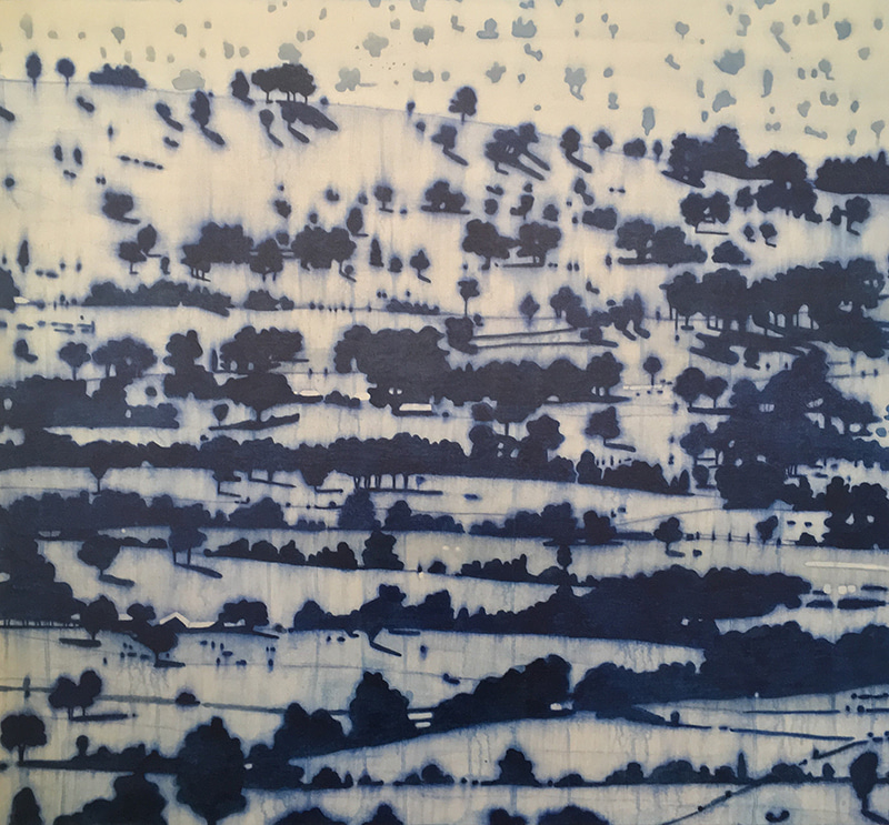 Kristen Lethem’s artwork focuses on landscape and the exploration of patterns within the environment formed as a result of the interplay between topography, vegetation and by extension - shadow and light.  Through the use of a restricted palette, these light and shadow patterns appear script like, coalescing into Lethem’s personal, visual language of the landscape.