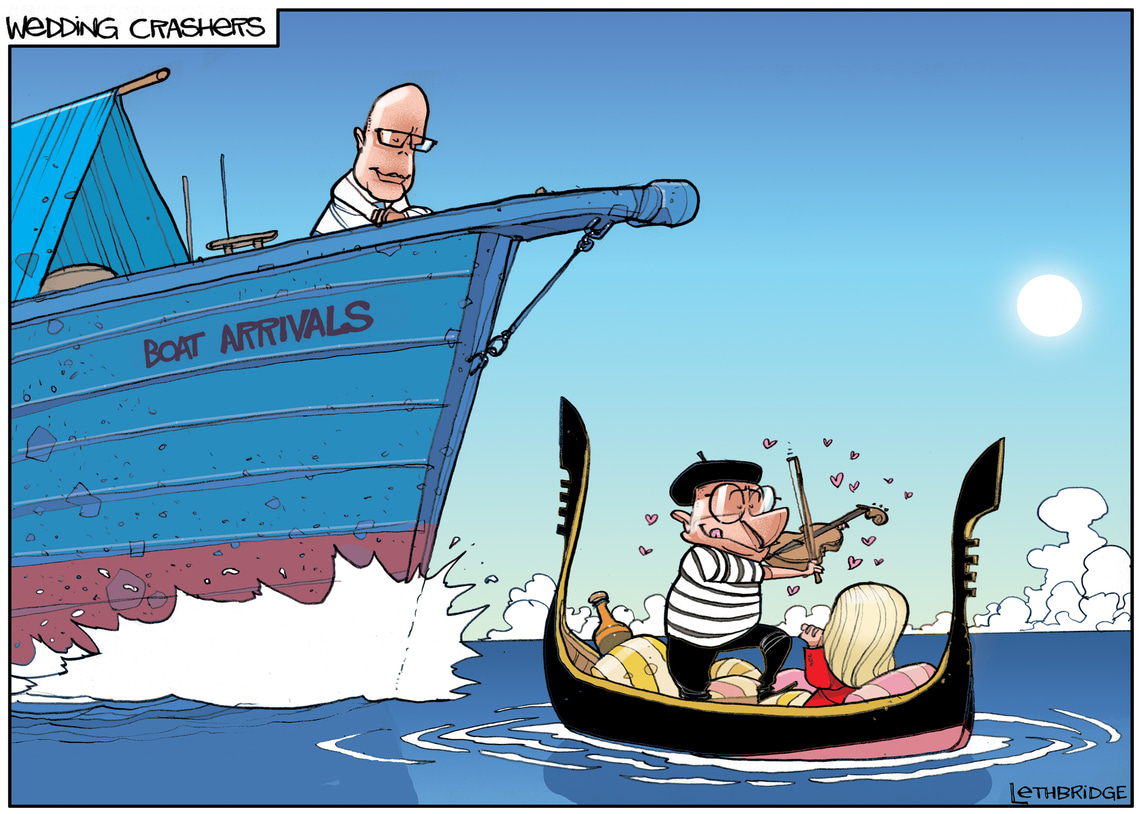 Published in the Political Cartoon column of the Courier Mail. Drawn and signed by cartoonist Brett Lethbridge.