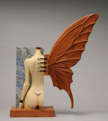 Timber, paint, leather, chiyogami paper, metal