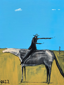 Woman on horseback, straight shooter by