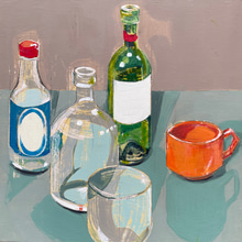 Still life with five items (including orange cup) by